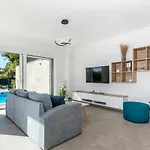 Katrya Luxury Villa的住客可用室外游泳池.该公寓离Šibenski Most大约4公里. 公寓距离格斯佩万格拉达教堂有15分钟的短暂车程.